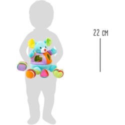 ¡Atención constructores! Con este cubo de robusta madera se apila por todo lo alto. Las figuras geométricas se encajan en las aperturas adecuadas, estimulando el reconocimiento de formas lúdicamente.