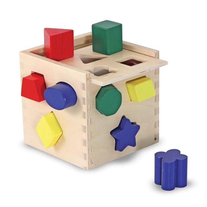 JUEGO DE CLASIFICACIÓN CREATIVO PARA NIÑOS: El juguete de madera clásico de cubo de clasificación de formas de Melissa and Doug es un juguete de madera bellamente construido con 12 formas de colores brillantes y fáciles de agarrar
