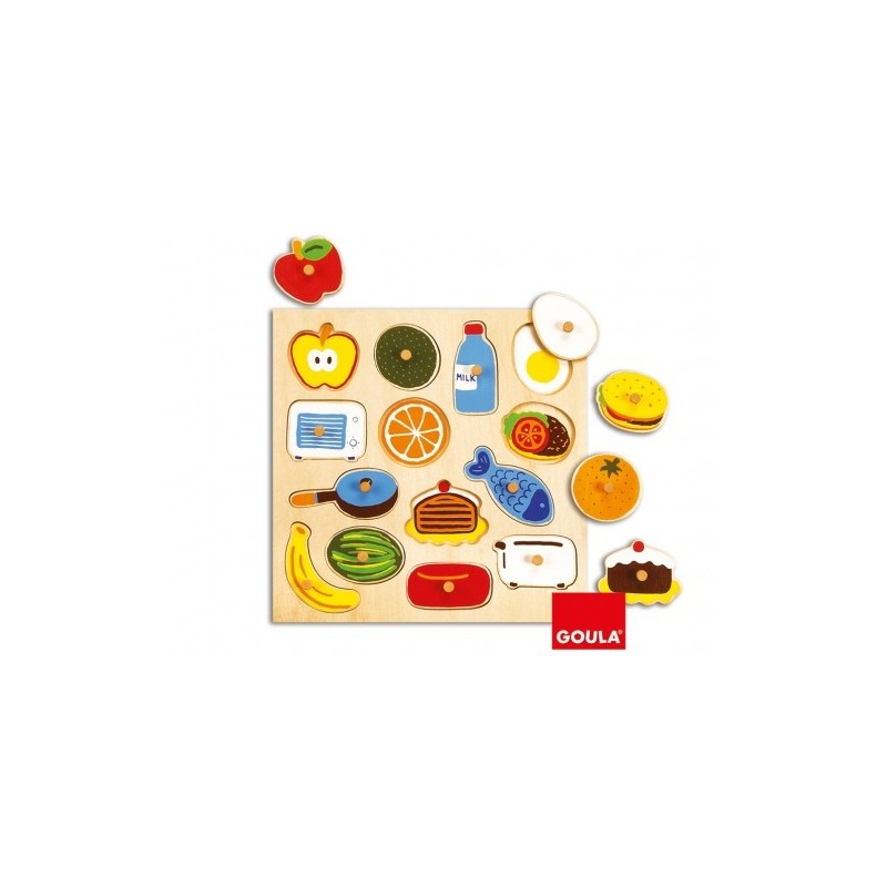 Encaje de 14 piezas. Ilustraciones de colores vistosos. Doble fondo. Relacionan objeto con su interior.