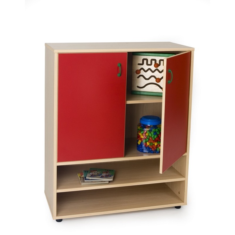 Mueble estanteria y armario con 2 estantes fabricado en melamina de haya de 12 mm de grosor, excepto trasera de 10 mm, puertas de 16 mm y cantos de PVC de 2 mm, acabado por las dos caras. Pies niveladores de PVC de 4 cm de diámetro y 4 cm de altura, para evitar la humedad y desniveles que pueda tener el suelo. Estos pies pueden ser retirados para poder superponer diferentes armarios. PUERTAS INTERIORES ANTIATRAPAMIENTO DE DEDOS EN SUCIERRE y tiradores de polímero suave (goma) (antigolpes).