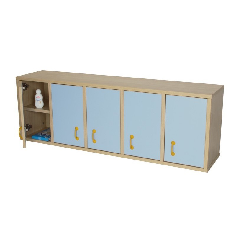 Mueble casillero con 10 casillas en dos lineas cerrado con puertas, cubriendo dos lineas (en vertical) cada una. Fabricado en melamina de haya de 19 mm de grosor, puertas de 16 mm, trasera de 10 mm y cantos de PVC de 2 mm. PUERTAS INTERIORES ANTIATRAPAMIENTO DE DEDOS EN SU CIERRE y tiradores de polímero suave (goma) (antigolpes).