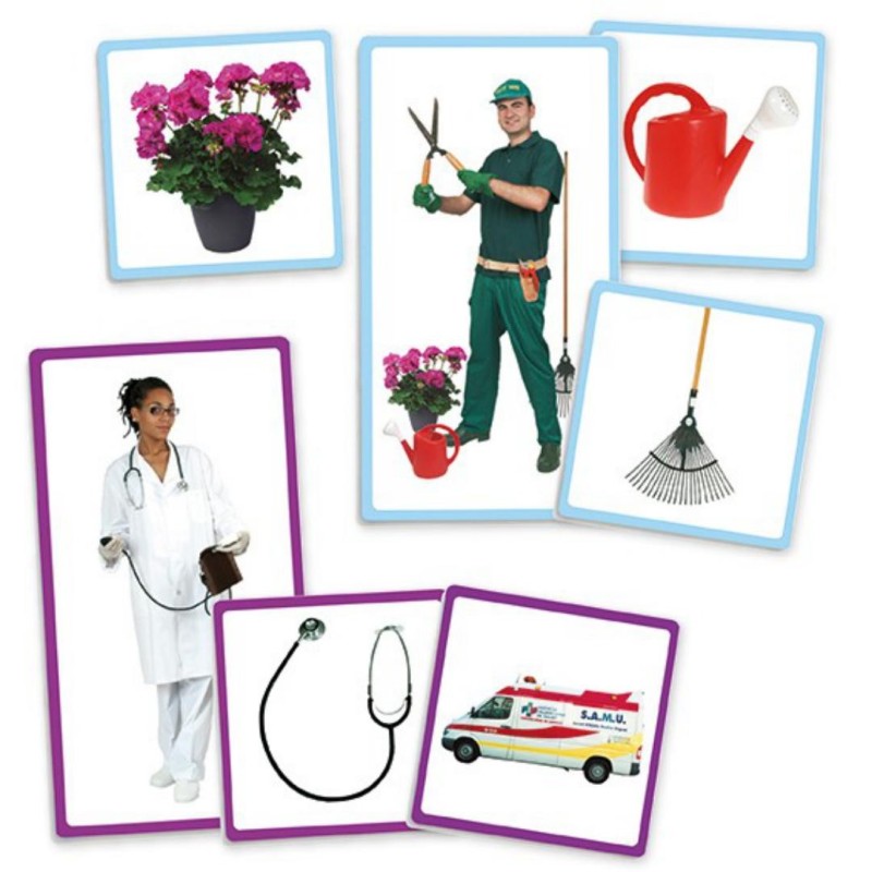 Relaciona los elementos con su oficio correspondiente. Descubre hasta 12 profesiones diferentes.