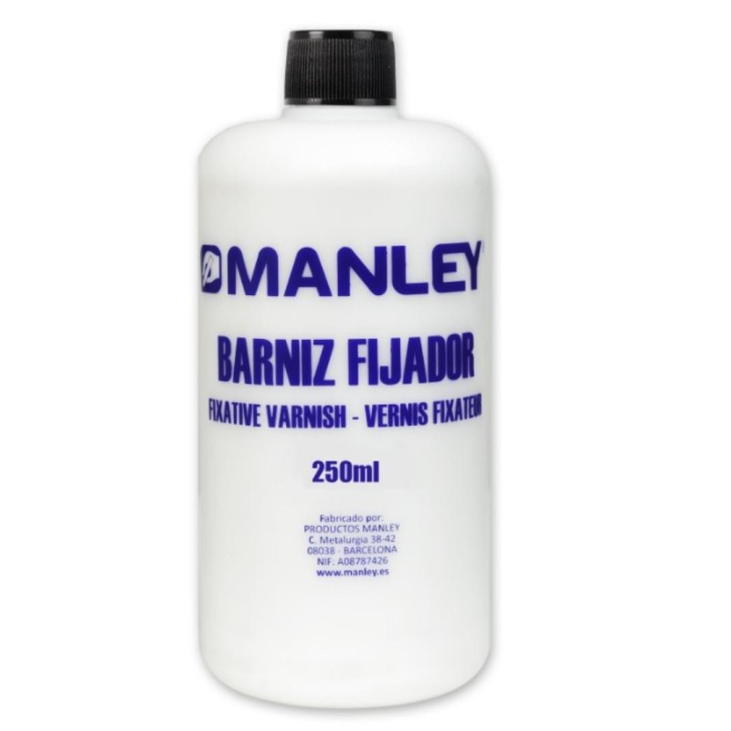 Barniz fijador 250 ml Manley. Fija y protege los dibujos de ceras y témperas dándole un acabado brillante.