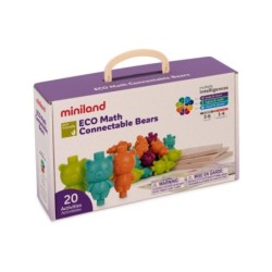 Este juguete educativo ayudará a los más pequeños a iniciarse en el mundo de las matemáticas. Sus piezas, con forma de osito, están fabricadas con bioplástico procedente de la caña de azúcar. También la base de espuma donde se colocan las piezas se confecciona con materiales reciclados y las fichas de juego están fabricadas en cartón. Este juego sirve de gran ayuda en el desarrollo de la coordinación visomotora, en la orientación espacial y en la introducción a las matemáticas. Además, permite la posibilidad de trabajar sobre la base tanto de manera horizontal como vertical, y también fuera de ella.