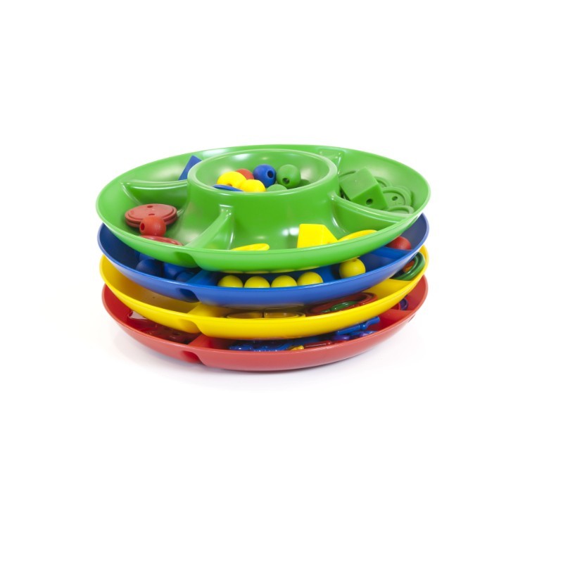 Para clasificar tamaños, colores y formas. De excelente calidad, plástico robusto. Con 5 departamentos para clasificar todo tipo de contadores y accesorios. Se presentan surtidas en los 4 colores básicos. Apta para uso colectivo.