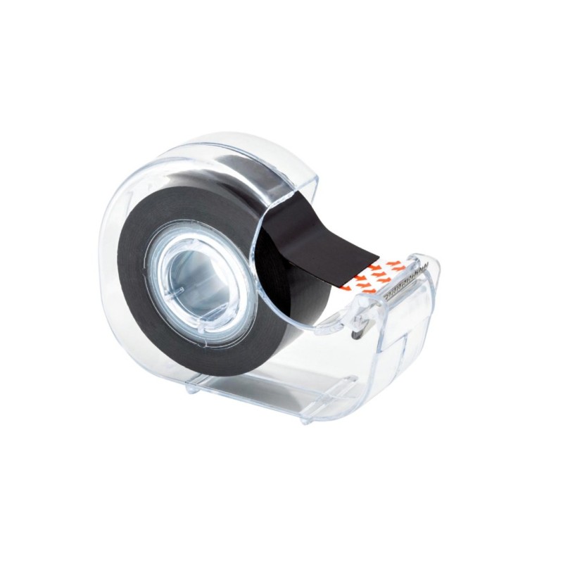 Se suministra con un práctico dispensador, que permite cortar con facilidad la cinta magnética adhesiva, al ser su espesor de 0.3 mm