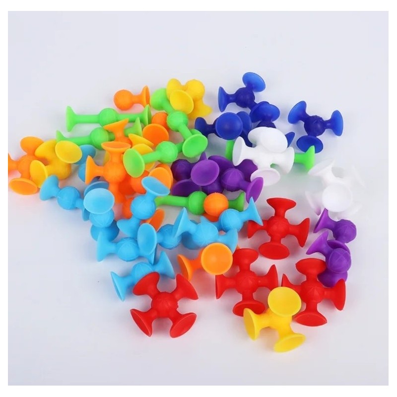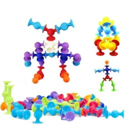 Bloques de construcción con ventosa de silicona suave para niños. Piezas flexibles, para ensamblarlas y construir diferentes formas. Colores variados y vivos