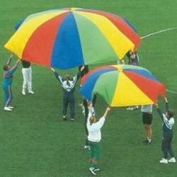 Jugar con el paracaídas proporciona ejercicio para todo el cuerpo para todas las edades y es una manera maravillosa de desarrollar la coordinación física básica. Hecho de poliéster colorido, liviano e ignífugo con asas muy fuertes, el paracaídas inspira muchos juegos y actividades diferentes.