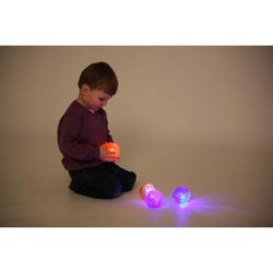 Estas pelotas enciendo luces y parpadean cuando son lanzadas y rebotan. Son buenas para ser usadas en juegos divertidos de lanzar y atrapar ya que son ideales para la mano de un niño pequeño. Las pelotas intermitentes sensoriales irregulares tienen diferentes superficies desiguales que saltan y se desvían en ángulos extraños cuando golpean el piso