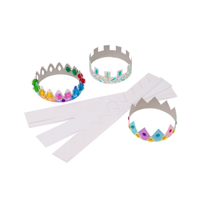 - CORONAS RECORTABLES PARA TARJETAS BLANCA: Perfectas para Navidad y fiestas de cumpleaños infantiles, este juego de coronas para tarjetas se puede pintar y decorar con chispitas, purpurina y otros adornos artesanales.