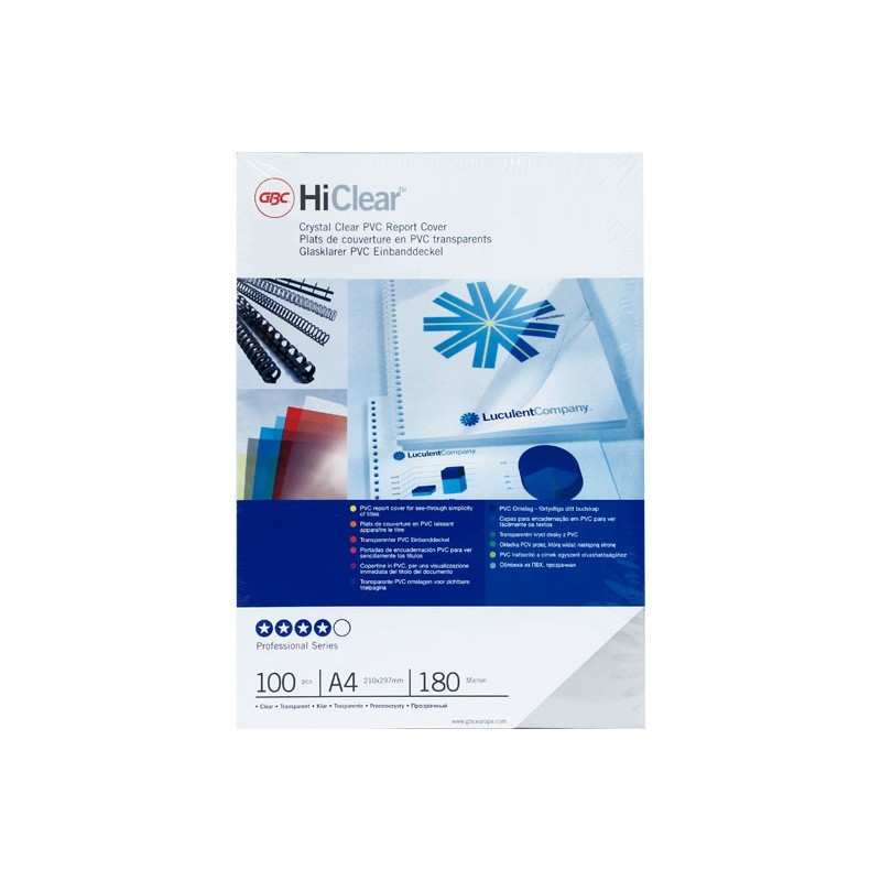 Las cubiertas HiClear en PVC transparente y duradero aportan un toque final de primera calidad mostrando la portada en su mejor expresión y protegiendo el contenido de los documentos. Ahora disponibles en acabado supertransparente A4 de 180 micras y presentadas en paquetes de 100.