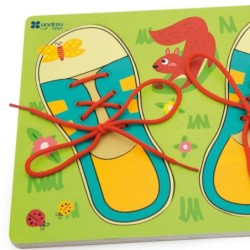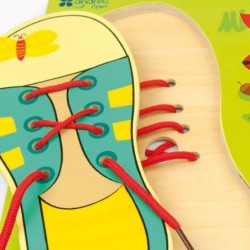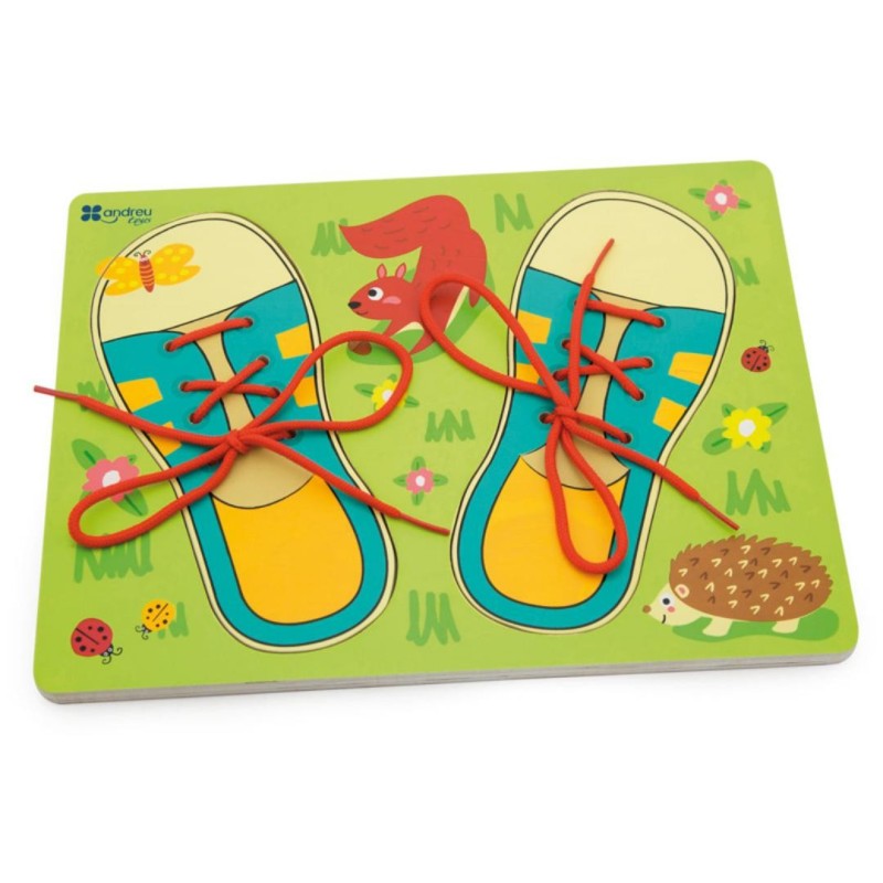 Sirve como encaje y como juego de atar cordones. Desarrollo del juego manipulativo y ejercicio psicomotriz. Uso recomendado a partir de 3 años.