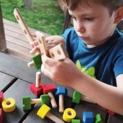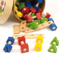 Aprende a enroscar, atornillar, construir con este magnífico set de 56 piezas geométricas.