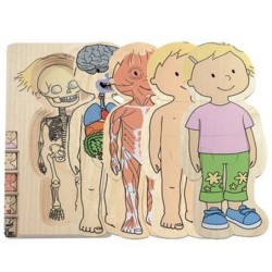 ¡Estos rompecabezas están desconcertados! Coloque las piezas juntas para crear una capa y luego apílelas para crear una historia. Estos rompecabezas muestran de una manera clara y infantil la composición de un cuerpo humano de chica: desde el esqueleto hasta los órganos, los músculos, la piel y la niña vestida. Cada capa tiene siete piezas. L@s niñ@s aprenden sobre el cuerpo al unir las piezas del rompecabezas.