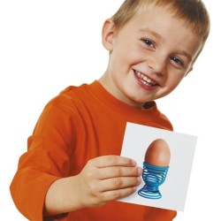 • La caja contiene: 6 láminas y 36 fichas de objetos de cartón..