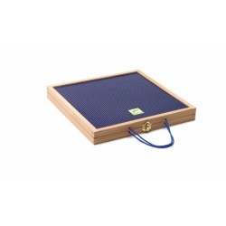 Una bonita maleta de madera que contiene 35 piezas de madera imantadas y 20 tarjetas modelo para divertirse reproduciendo todo tipo de hombres divertidos y chiflados. El niño abre la caja y coloca las piezas directamente en uno de los dos lados metálicos para crear su personaje.
