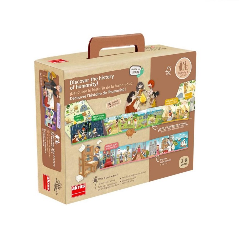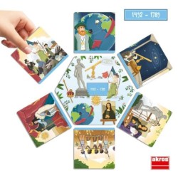 Juego de asociación para descubrir jugando las diferentes etapas de la historia y algunos de sus principales acontecimientos. Con divertidas ilustraciones que, de manera sencilla, ayudan a conocer grandes pasos de la humanidad, desde sus orígenes hasta la actualidad.