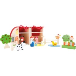 GRANJA DE MADERA CON 15 FIGURAS 24X12X15 CM