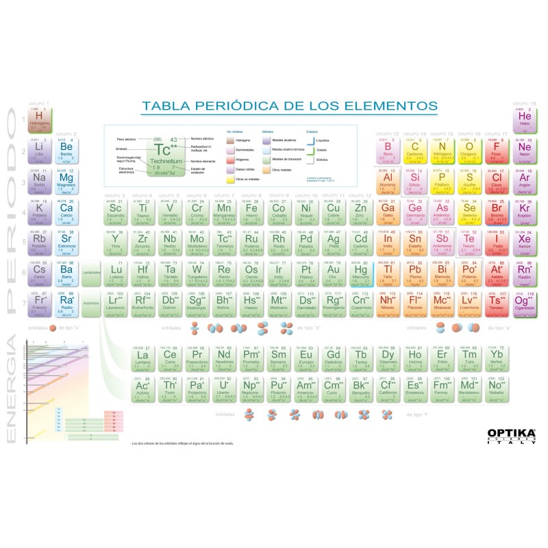 estructura. Un gráfico muestra el nivel energético de los orbitales, que