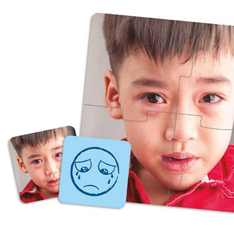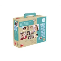 Set de 10 puzzles con las emociones básicas que guían nuestro comportamiento, y 10 iconos de las mismas que ayudan a identificarlas: alegría, seguridad, admiración, curiosidad, sorpresa, ira, asco, tristeza, miedo y culpa. Puzzles progresivos de 3, 4 y 6 piezas. Realizados con piezas grandes en cartón grueso de máxima calidad y resistencia, para niños a partir de 2 años.