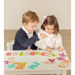 Set de letras y números para aprender sus trazos de forma divertida, realizado en materiales eco-friendly. Incluye un folleto que cuenta con indicaciones que guían en la acción de coser, para favorecer la psicomotricidad fina. Las letras y números están fabricados con bioplástico procedente de caña de azúcar y sus cordones, en algodón natural.