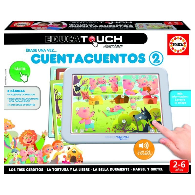 Consta de: 4 cuentos completos; Los Tres Cerditos, La tortuga y la Liebre, La bella Durmiente, Hansel y Gretel y 3 modos de juegos diferentes para un mejor aprendizaje: cuentacuentos, exploración y preguntas.