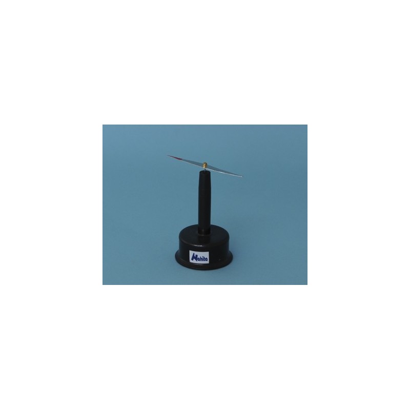 Base circular en baquelita con pilar no magnético y soporte en acero al carbono sobre el que pivota la aguja.