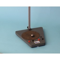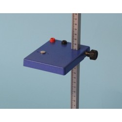 El equipo consta de un electroimán montado sobre una carcasa de plástico que permite liberar una bola metálica adherida a una barra de sección cuadrada.