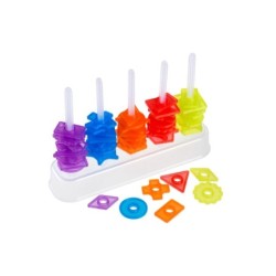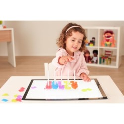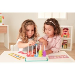 Ábaco de plástico translúcido formado por una base de 5 columnas y 50 piezas en diferentes colores y formas. Se trata de un atractivo material manipulativo, muy útil para trabajar la clasificación y seriación de forma divertida. Incluye fichas transparentes de actividades con nivel de dificultad creciente, aptas para mesas de luz, que les ayudarán a empezar a familiarizarse con nociones matemáticas básicas, a la vez que potencia su capacidad de concentración y les divierte.