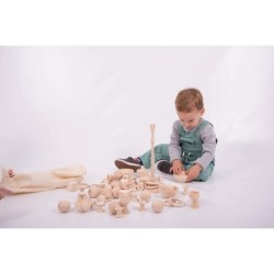 Permite que tu hijo descubra las maravillas del aprendizaje a través del Juego Heurístico Set de Inicio. Una variedad de objetos de madera interesantes que no son típicos de los juguetes que suelen utilizar. Estos artículos simples y curiosos estimularán la imaginación de su hijo y les animarán a explorar formas de incorporarlos en el juego imaginativo y aprender sobre el mundo que les rodea. Simplemente, apoyan a su hijo para que descubra y aprenda por sí mismo a través de un enfoque práctico. No hay una forma 'correcta' de usar estos objetos, por lo que su hijo es libre de explorar a su antojo; ¡no hay limitaciones para la creatividad y la innovación!