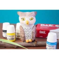 Desde relieves hasta esculturas o mosaicos: la pasta para modelar DAS puede ser utilizada para toda una variedad de actividades creativas. Extremadamente fácil de trabajar, gracias a su textura fina y homogénea, facilitado así su alisado. Con la pasta para modelar DAS puedes crear objetos sólidos y resistentes y decorarlos con pinturas a base agua, acrílica, rotuladores especiales o barniz. Se puede utilizar para recubrir otros soportes como madera, cartón, metal o vidrio. Está fabricado a partir de ingredientes naturales, no contiene gluten y está dermatológicamente testado. Esta arcilla se endurece al aire y no necesita cocción (24 h/1 cm.). Se puede lavar fácilmente de las manos y de la mayoría de tejidos usando un lavado a máquina.