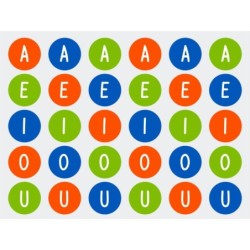 redondos con vocales multicolor de tamaño Ø 20 mm con adhesivo removible. Cada