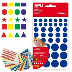 Bolsa de gomets de adhesivo permanente con diferentes colores, formas y tamaños*. Cada bolsa contiene 20 hojas con gomets surtidos, un total de 864 gomets por bolsa. Un producto indispensable en cualquier hogar y escuela. Antes de aprender a manejar el lápiz o las pinturas, con estos gomets, los niños pueden ir iniciándose en el mundo de los colores y las formas. Jugar y crear con gomets es una actividad básica que permite desarrollar la psicomotricidad fina y trabajar, al mismo tiempo, varias capacidades y habilidades como el conocimiento de los colores, las formas geométricas y los tamaños; el desarrollo de la lógica y la creatividad; el trabajo en equipo o el dominio del espacio, entre otros. Además, los gomets APLI cumplen con las más estrictas normas de calidad y seguridad: - Se fabrican conforme a las normas EN-71 y a la cadena de custodia FSC - Adhesivo base agua - Libre de disolventes - Papeles ECF (Elemental Chlorine Free) - Materiales 100% reciclables *Desglose de gomets: Triángulos: - 10 x 8 x 8 mm: 136 gomets (34 por color) - 23 x 17 x 17 mm: 80 gomets (20 por color) - 33 x 23 x 23 mm: 64 gomets (16 por color) Círculos: - Ø 10 mm: 56 gomets (14 por color) - Ø 15 mm: 60 gomets (15 por color) - Ø 23 mm: 48 gomets (12 por color) Cuadrado: - 15 x 15 mm: 56 gomets (14 por color) - 17 x 17 mm: 40 gomets (10 por color) - 23 x 23 mm: 48 gomets (12 por color) Rectángulo: - 14 x 8 mm: 40 gomets (10 por color) - 24 x 12 mm: 64 gomets (16 por color) - 35 x 24 mm: 32 gomets (8 por color) Estrella: - Ø 12 mm: 48 gomets (12 por color) - Ø 16 mm: 60 gomets (15 por color) - Ø 20 mm: 32 gomets (8 por color)