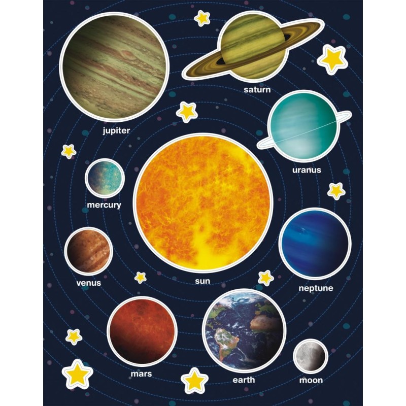 Gomets temáticos Sistema solar 12 hojas