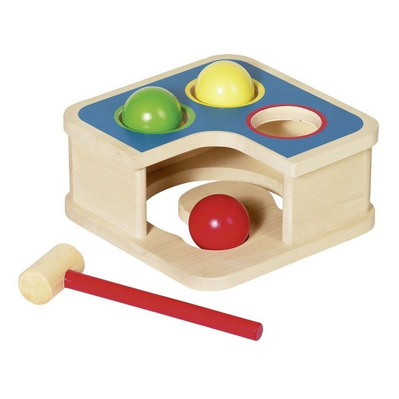 ¡2 en 1! Por un lado un juego de martillo ypor otro una pista de bolas.