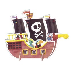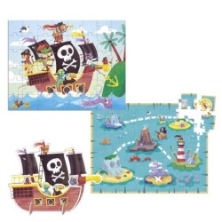 Puzle XXL Piratas reversible con dos escenas diferentes: escena ambientada en los piratas y un mapa del tesoro. Incluye un barco pirata para jugar con el Mapa del Tesoro. ¡Monta el puzle pirata y encuentra el Tesoro!