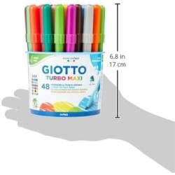 Más ergonómico gracias a su forma extra grande. Giotto Turbo Maxi tiene una punta súper resistente y bloqueada de 5 mm. Se trata de un rotulador muy completo gracias a su tapón de seguridad ventilado, las tintas seguras base agua de muy larga duración y su fácil lavado de piel y tejidos.
