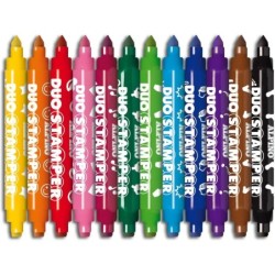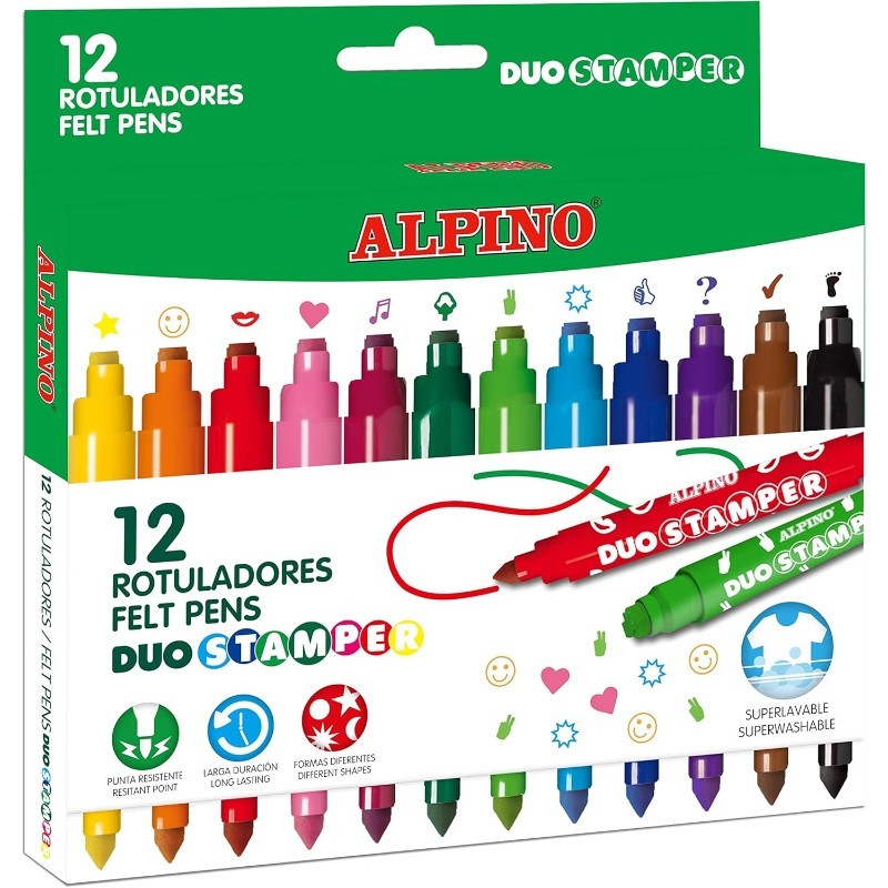Los rotuladores Alpino Duo Stamper tienen doble punta: punta gruesa y punta con sello en punta plana.