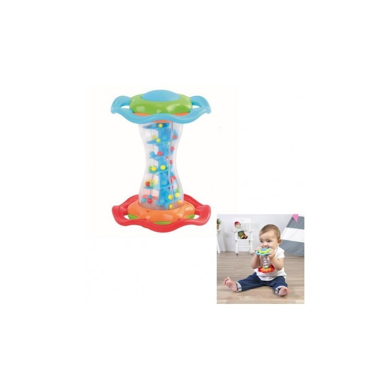 Rodillo con "palo de lluvia" incorporado que favorece la motricidad general. Al hacerlo rodar y rodar por el suelo, estimula al gateo y el desplazamiento. Con zonas de rodadura blanditas que lo hacen silencioso al rodar.