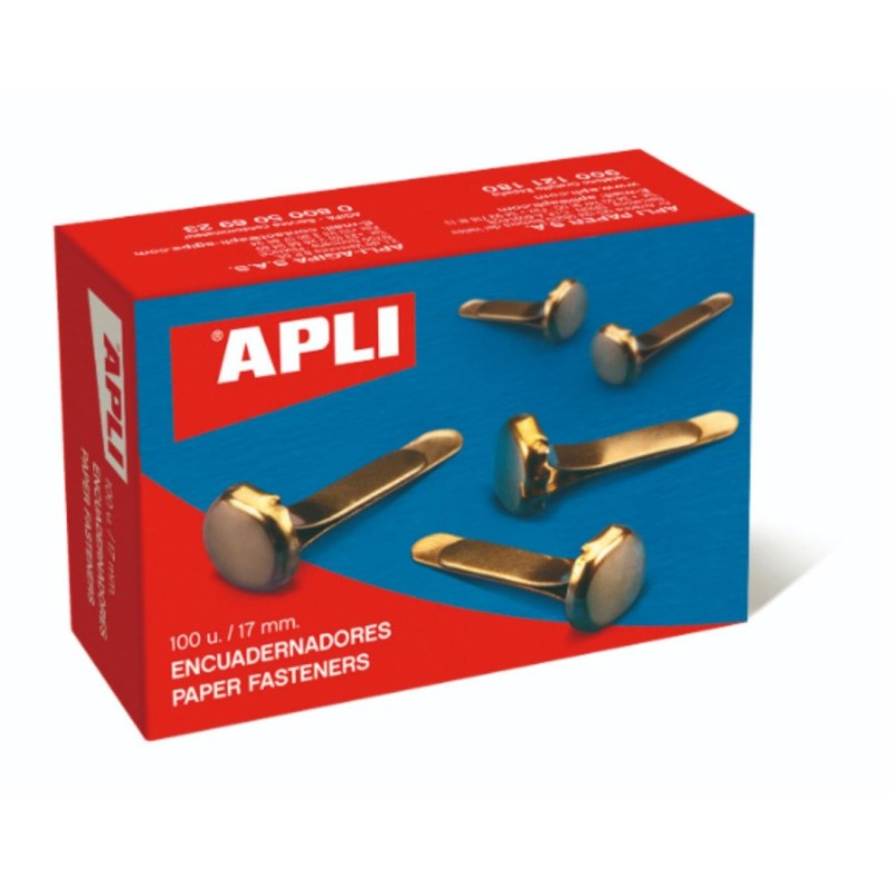 Encuadernadores metálicos sin arandela en color dorado de 12 mm. Cada caja contiene 100 encuadernadores. Aptos para todo tipo de documentos independientemente del número o distancia de sus perforaciones. Ideales para encuadernar, sujetar o agrupar trabajos y apuntes, así como para usar en tus manualidades de Scrapbooking.