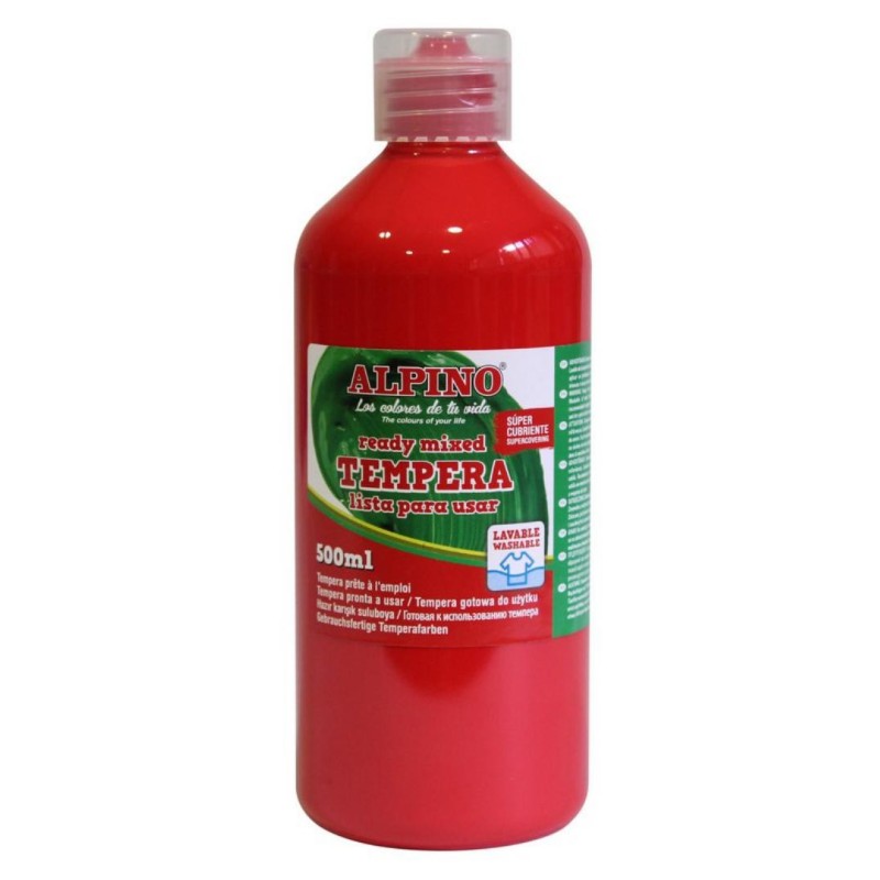 Tempera preparada escolar de 500 ml de color rojo. Témpera super cubriente, lavable y de colores brillantes.