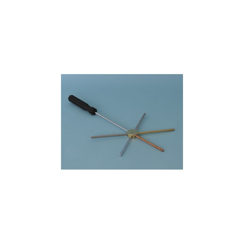 Las 5 varillas metálicas se disponen equidistantes entre sí y de forma radial con respecto a un núcleo central hexagonal fabricado en latón.
