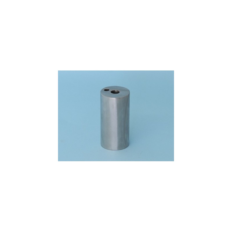 Cada bloque es de forma cilíndrica y masa de 1 Kg ± 2% y presenta 2 orificios, uno grande central (unos 12.5 mm) para alojar la resistencia y uno más pequello (unos 7.5 mm) para alojar un termómetro o un sensor de temperatura.