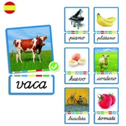 Juego de asociación para unir 108 sustantivos con su imagen correspondiente. Está disponible en una gran variedad de idiomas.
